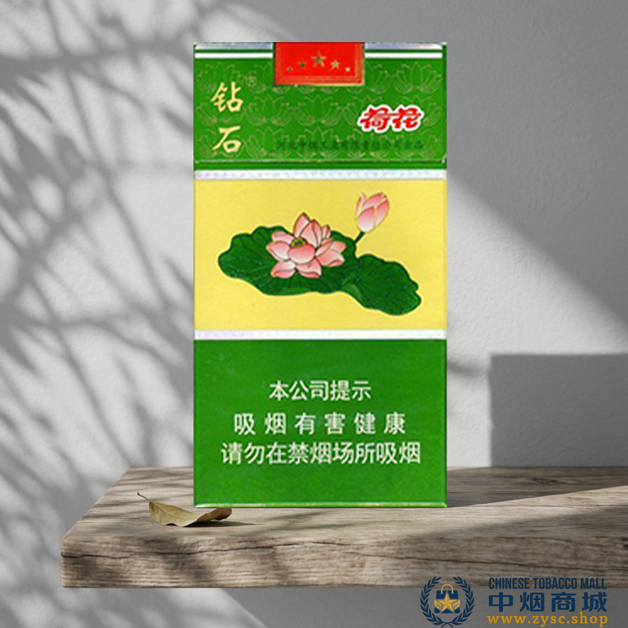 钻石(细支荷花),是荷花系列中最火爆的单品之一。它以修长的身形和标志性的“绿盒子”在细支烟市场占据了极高地位。